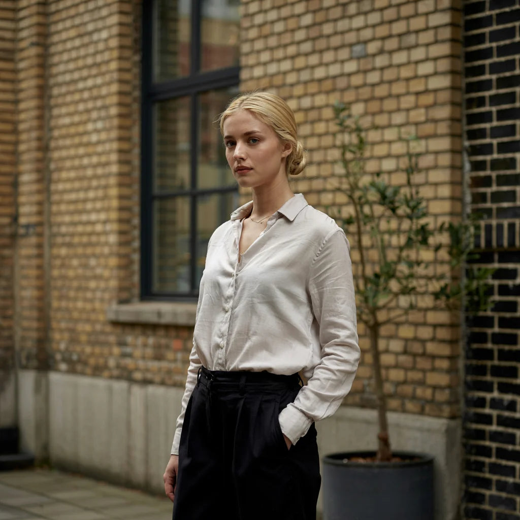 Mir ist es wichtig, dass wir das Material sehr genau auswählen und wir achten auf den klaren Schnitt. Damit das Kleidungsstück vielseitig ist, das Kleidungsstück langlebig ist und das Kleidungsstück angenehm zu tragen ist – Tag für Tag.